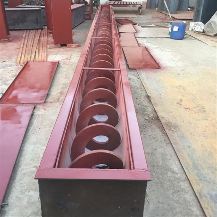 當(dāng)螺旋軸轉(zhuǎn)動(dòng)時(shí),由于物料的重力及其與槽體壁所產(chǎn)生的摩擦力,使物料只能在葉片的推送下沿著輸送機(jī)的槽底向前移動(dòng),其情況好像不能旋轉(zhuǎn)的螺母沿著旋轉(zhuǎn)的螺桿作平移運(yùn)動(dòng)一樣。物料在中間軸承的運(yùn)移,則是依靠后面前進(jìn)著的物料的推力。所以,物料在輸送機(jī)中的運(yùn)送,完全是一種滑移運(yùn)動(dòng)。為了使螺旋軸處于較為有利的受拉狀態(tài),一般都將驅(qū)動(dòng)裝置和卸料口安放在輸送機(jī)的同一端,而把進(jìn)料口盡量放在另一端的尾部附近。 旋轉(zhuǎn)的螺旋葉片將物料推移而進(jìn)行輸送,使物料不與螺旋輸送機(jī)葉片一起旋轉(zhuǎn)的力是物料自身重量和螺旋輸送機(jī)機(jī)殼對(duì)物料的摩擦阻力。葉片的面型根據(jù)輸送物料的不同有實(shí)體面型、帶式面型、葉片面型等型式。